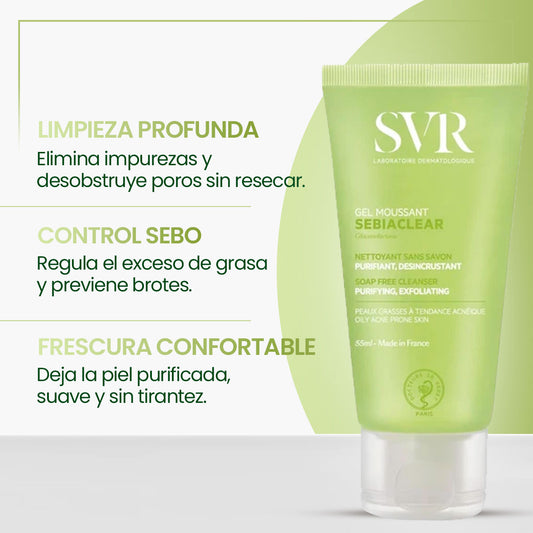 SVR Sebiaclear Gel Moussant 200ml es un gel limpiador suave y eficaz, formulado especialmente para piel grasa, mixta y con tendencia acneica. Su fórmula sin jabón y de alta tolerancia limpia profundamente, elimina impurezas, controla el exceso de sebo y desobstruye los poros, dejando la piel fresca, purificada y sin...